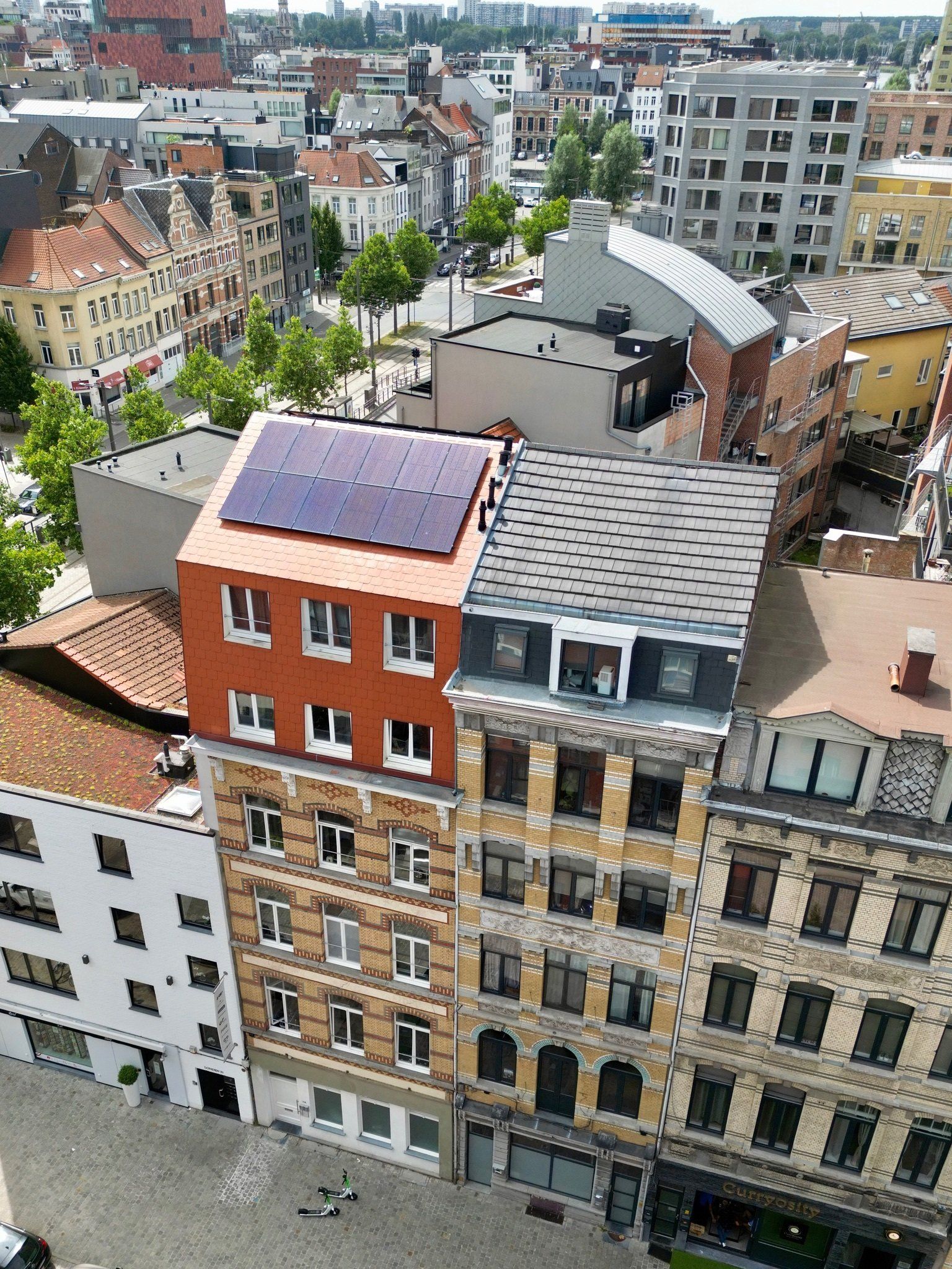 Ben je op zoek naar een studentenkamer vlakbij AP Hogeschool - Campus Spoor Noord en in de buurt van Hogere Zeevaartschool Antwerpen en UA? In de Napelsstraat 110 hebben we vorig jaar een herenhuis omgebouwd tot 11 prachtige studentenkamers en twee studentenstudio's met een hoogwaardige afwerking. De studentenkamers zijn bemeubeld en voorzien van een eigen badkamer met douche-toilet. Voor de studentenkamers is er een zeer ruime keuken en leef/eetgedeelte op het gelijkvloers voorzien. De keuken is uitgerust met een inductie kookvuur, combi-oven en vaatwasser. Op het gelijkvloers bevindt zich ook een fietsenstalling. De studio's (geschikt voor twee personen) zijn uitgerust met een eigen badkamer, hoogslaper en keuken. Vanuit de bovenste studentenkamers en studio heb je een prachtig zicht over het Eilandje.